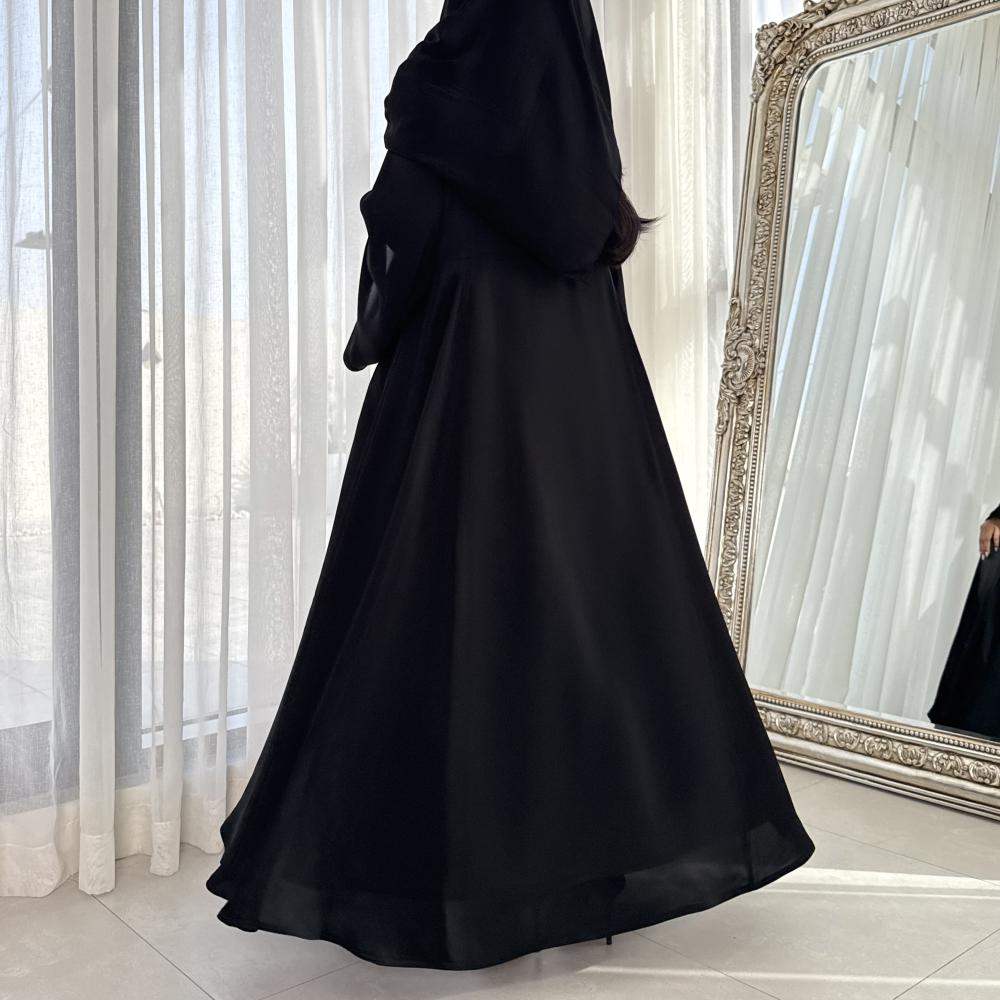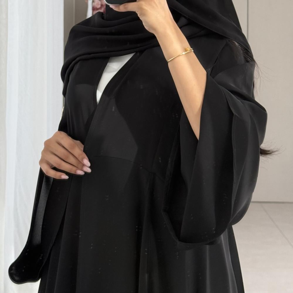 قصة العبايه: كلوش مع تخصيره "الصدر اصغر بأنش من المقاسات المعروضة"