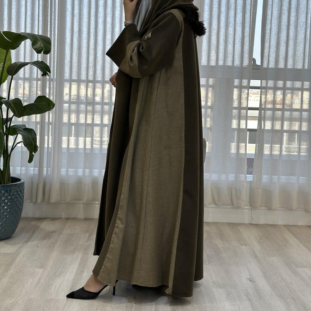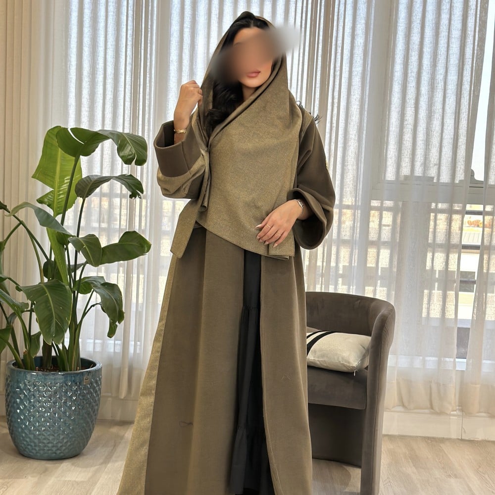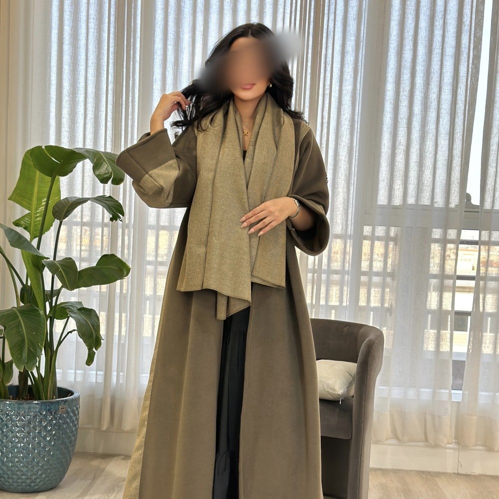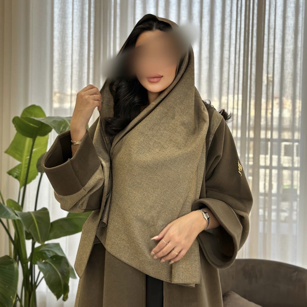 القماش: جوخ اسود مع كشمير رمادي غامق مع شال كشميرالطرحة: اسودالقصة: نص كلوشطريقة الغسيل: غسيل جافدرجة التدفئة: دافئ