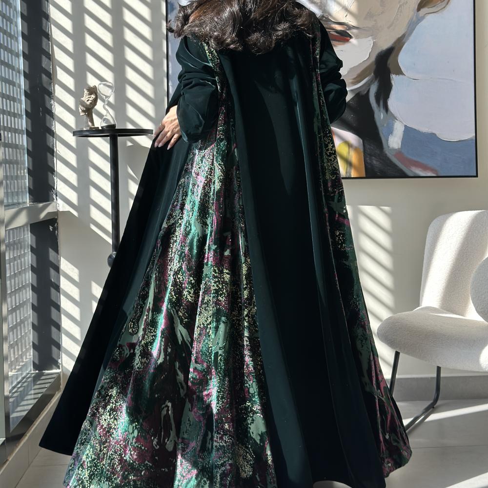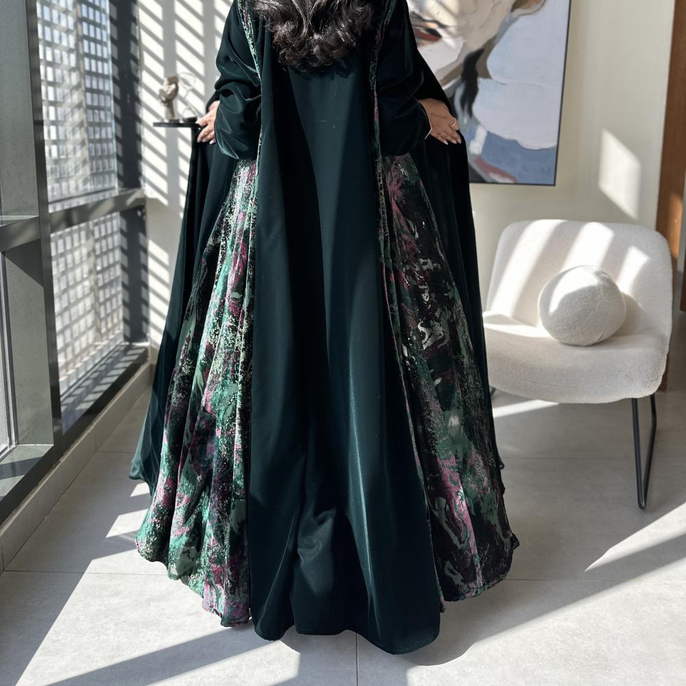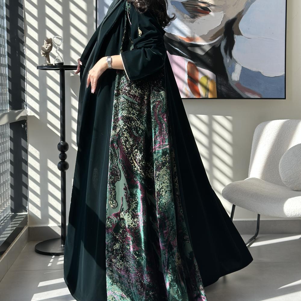 القماش: مخمل زيتي كوري مع شيفون مخمل زيتي بعنابي ايطالي