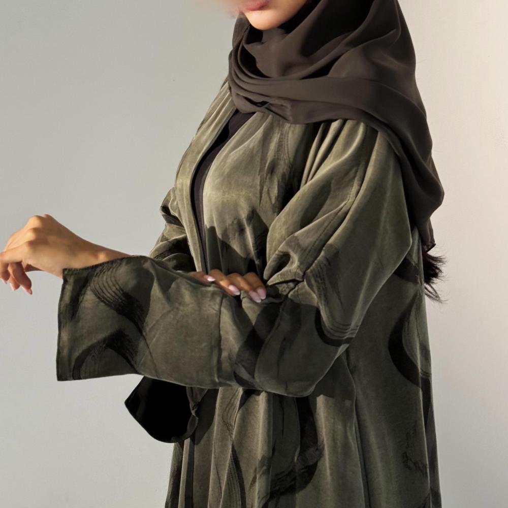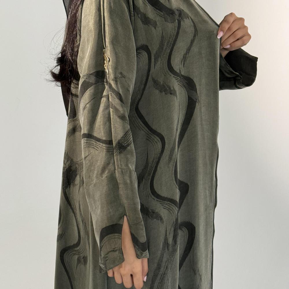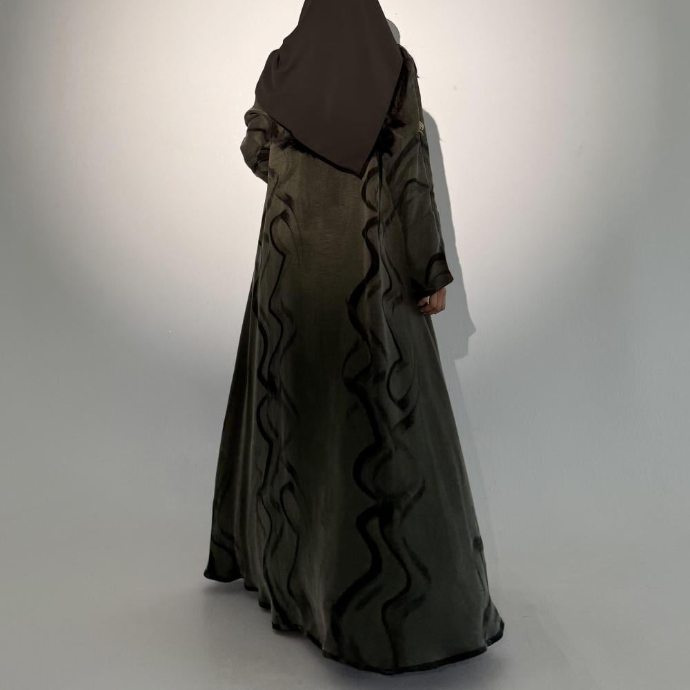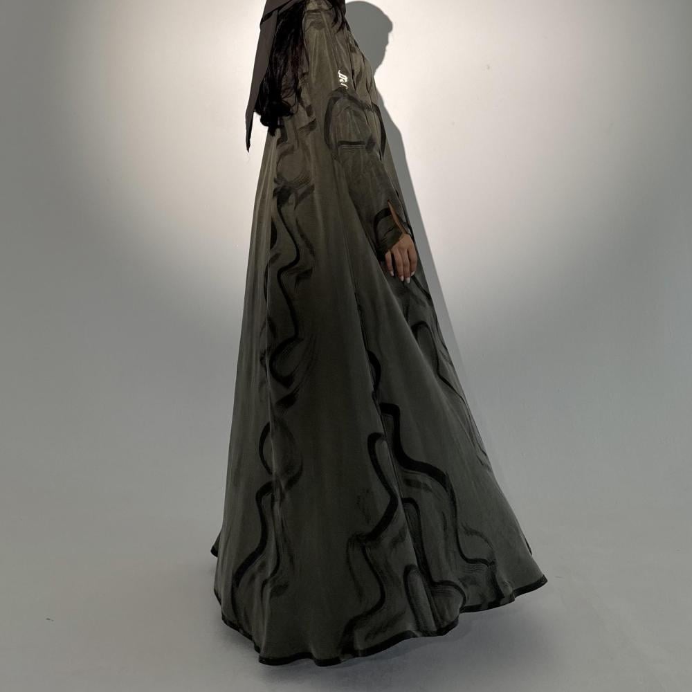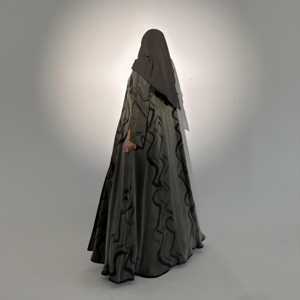 القماش: حرير مغسول تركي أسود مخطط بحرير مغسول رمادي "العباية دبل فيس"