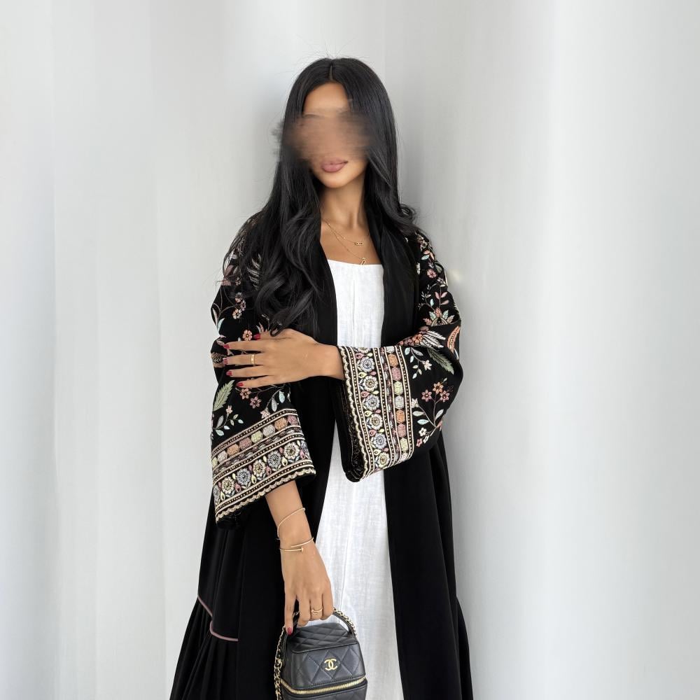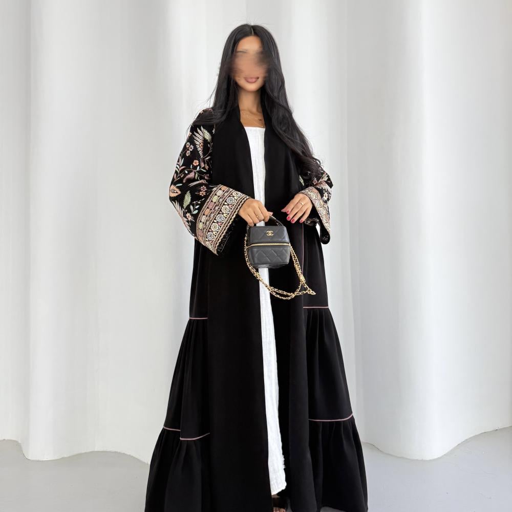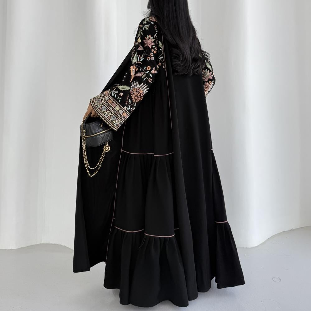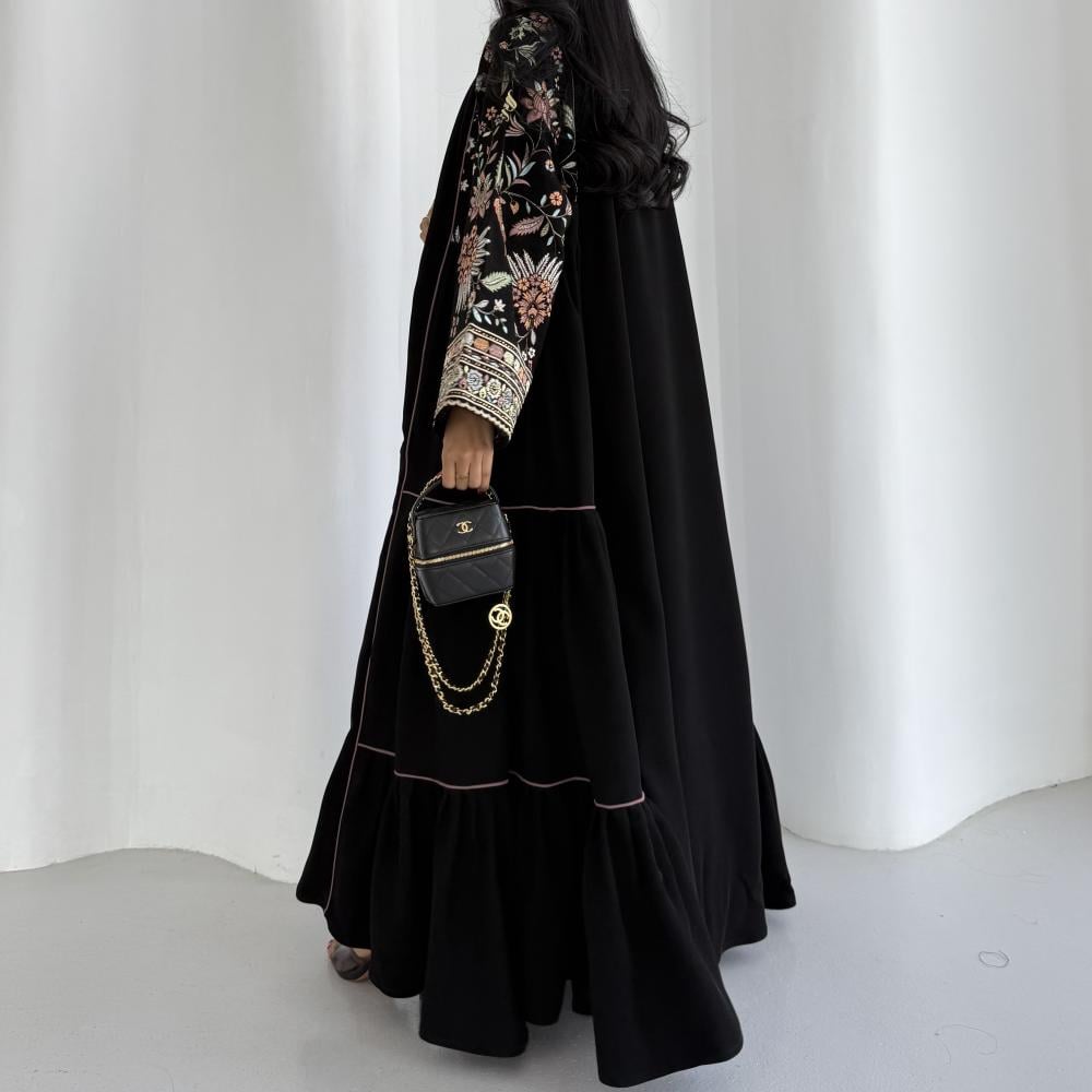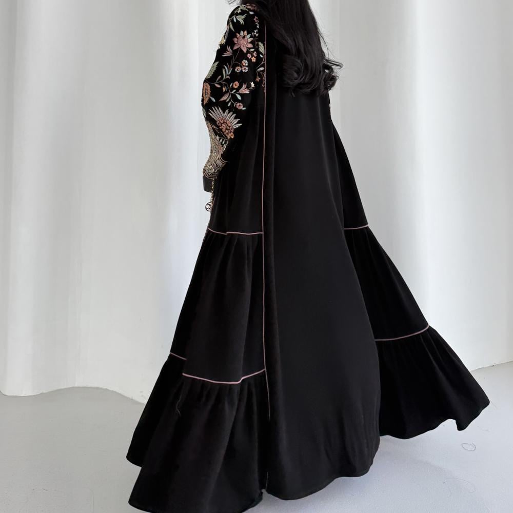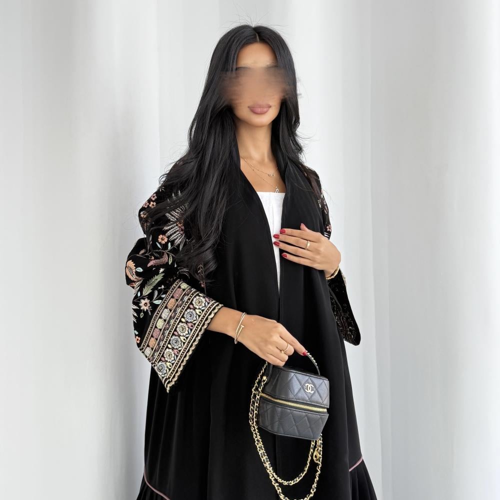 القماش: كريب سيراميك اسود مع كريب سيراميك مطرز هندي وكريستال وقيطان بينك