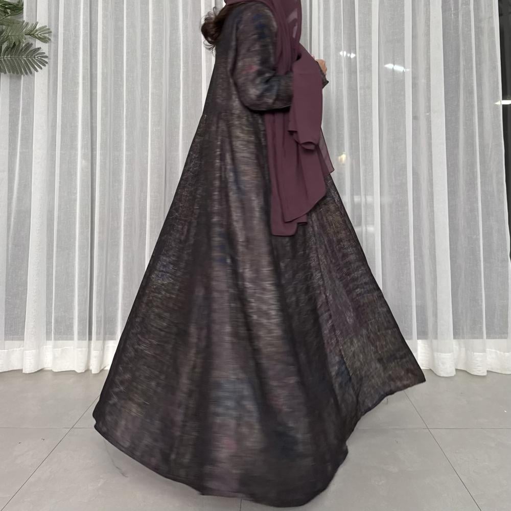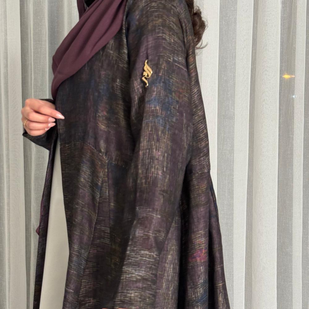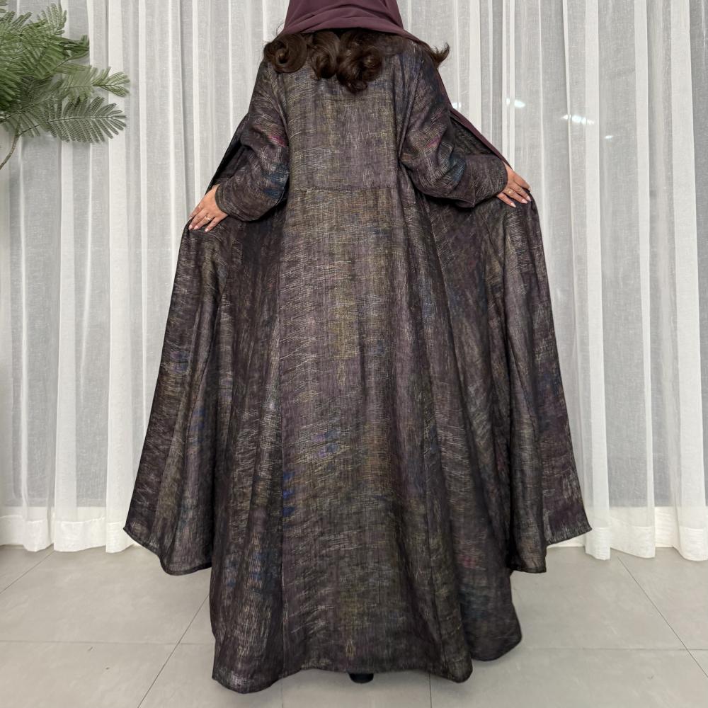 القماش: لينن هندي مموج وطاغي عليه اللون البنفسجي