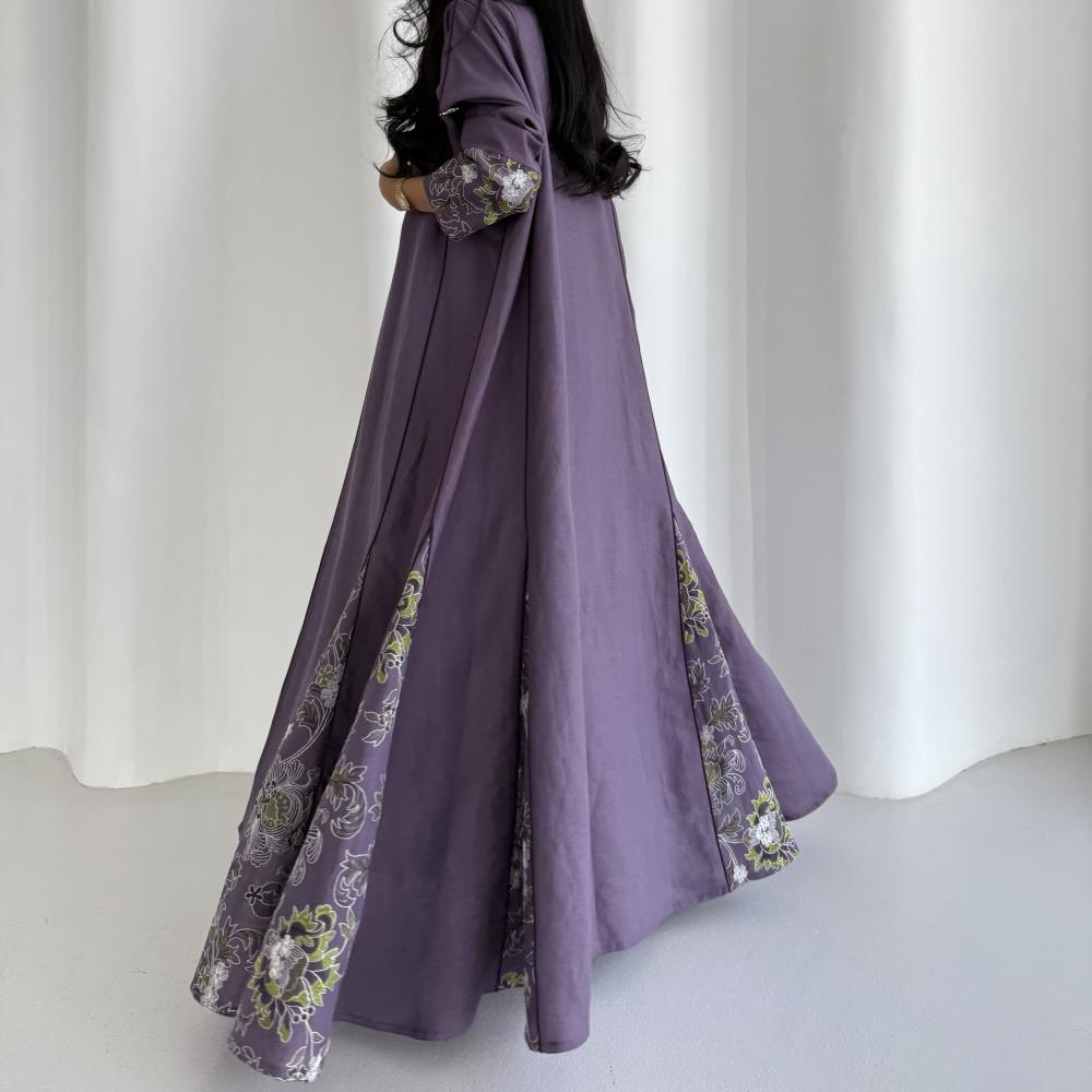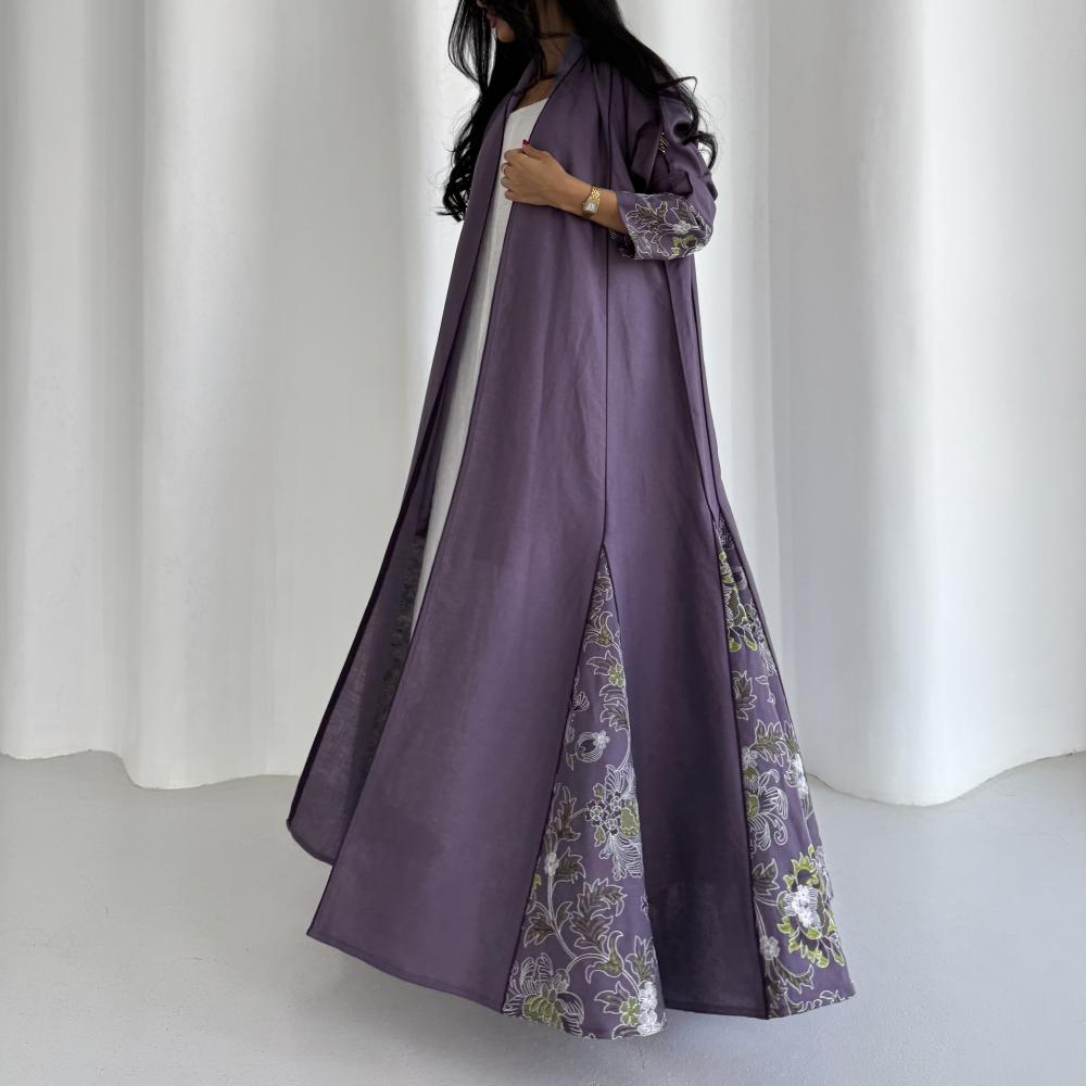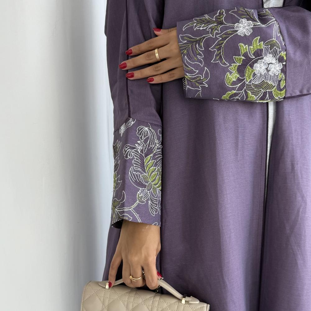 القماش: لينن طبيعي بنفسجي فاتح مع لينن طبيعي بنفسجي فاتح مطرز