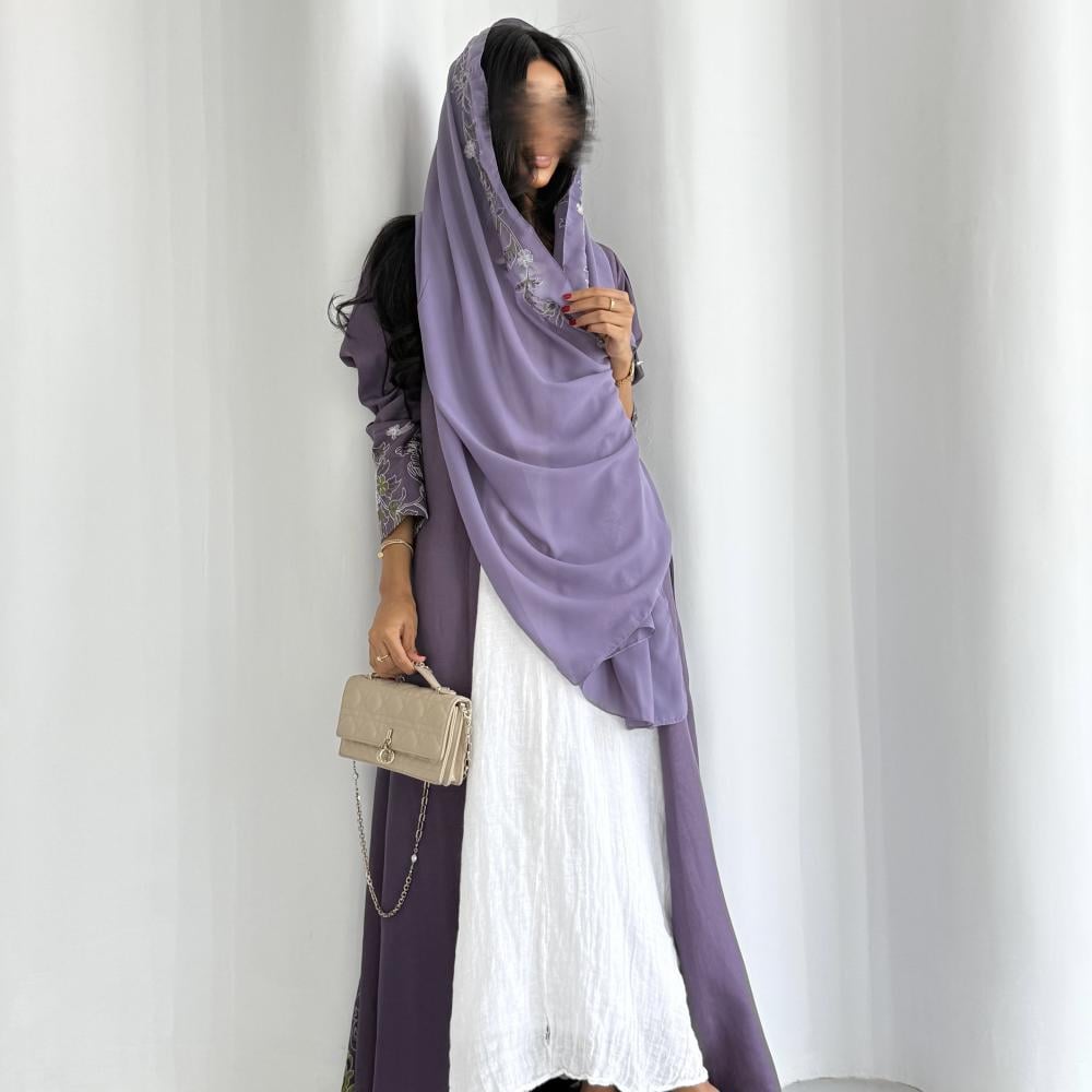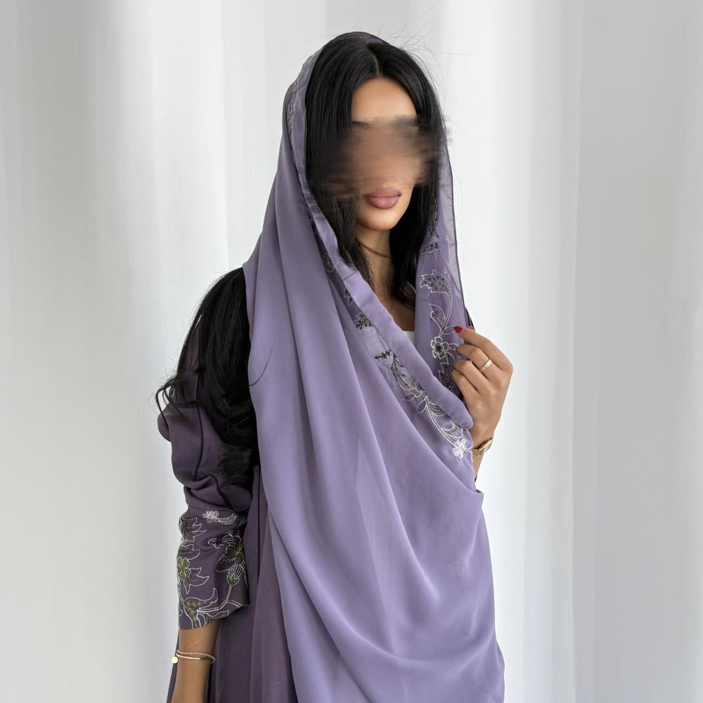 الطرحة: بنفسجي فاتح بطرف تطريز
