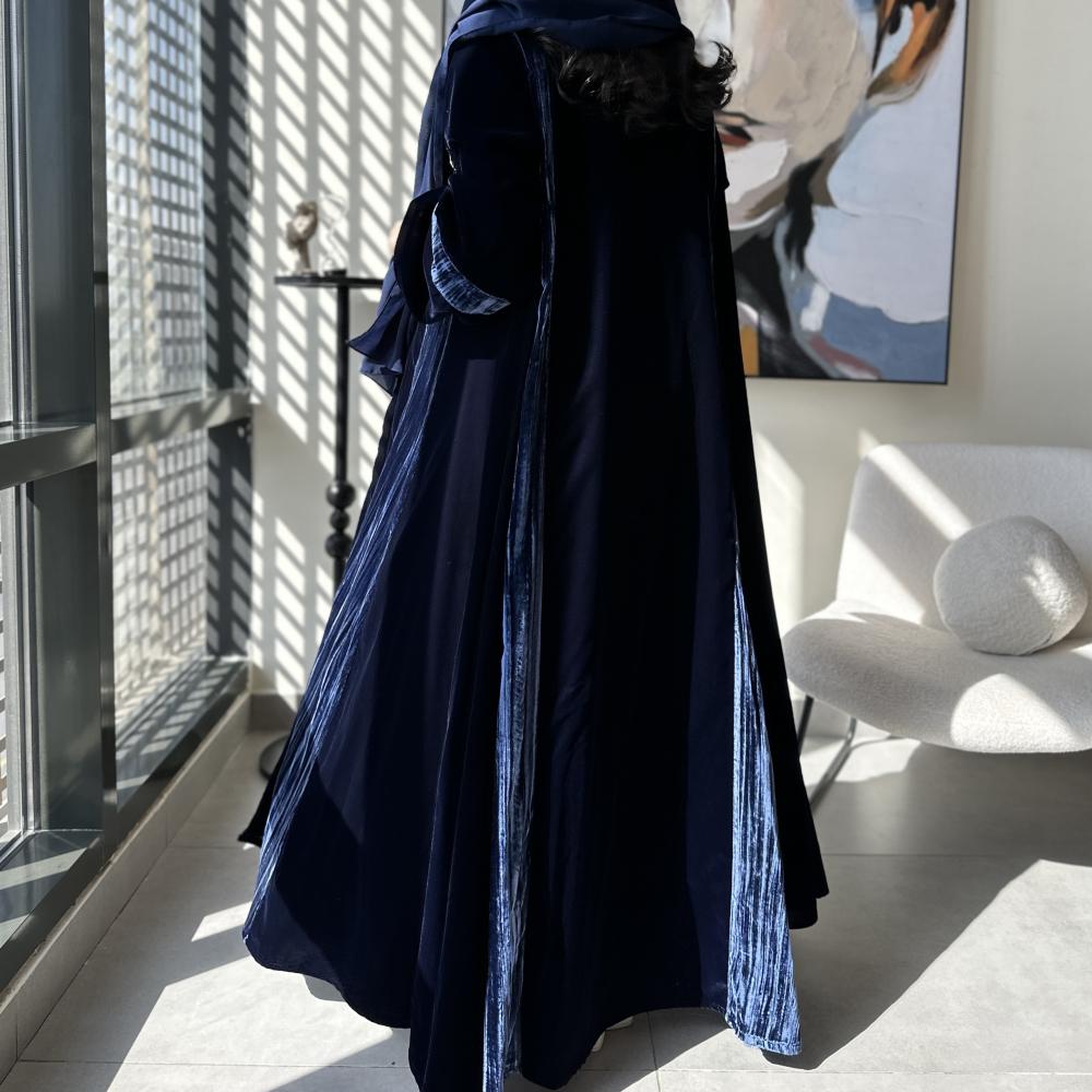 القماش: مخمل حرير كحلي مع مخمل حرير مكسر كحلي ومبطنةالطرحة: كحليالقصة: كلوشطريقة الغسيل: غسيل جافدرجة التدفئة: وسط